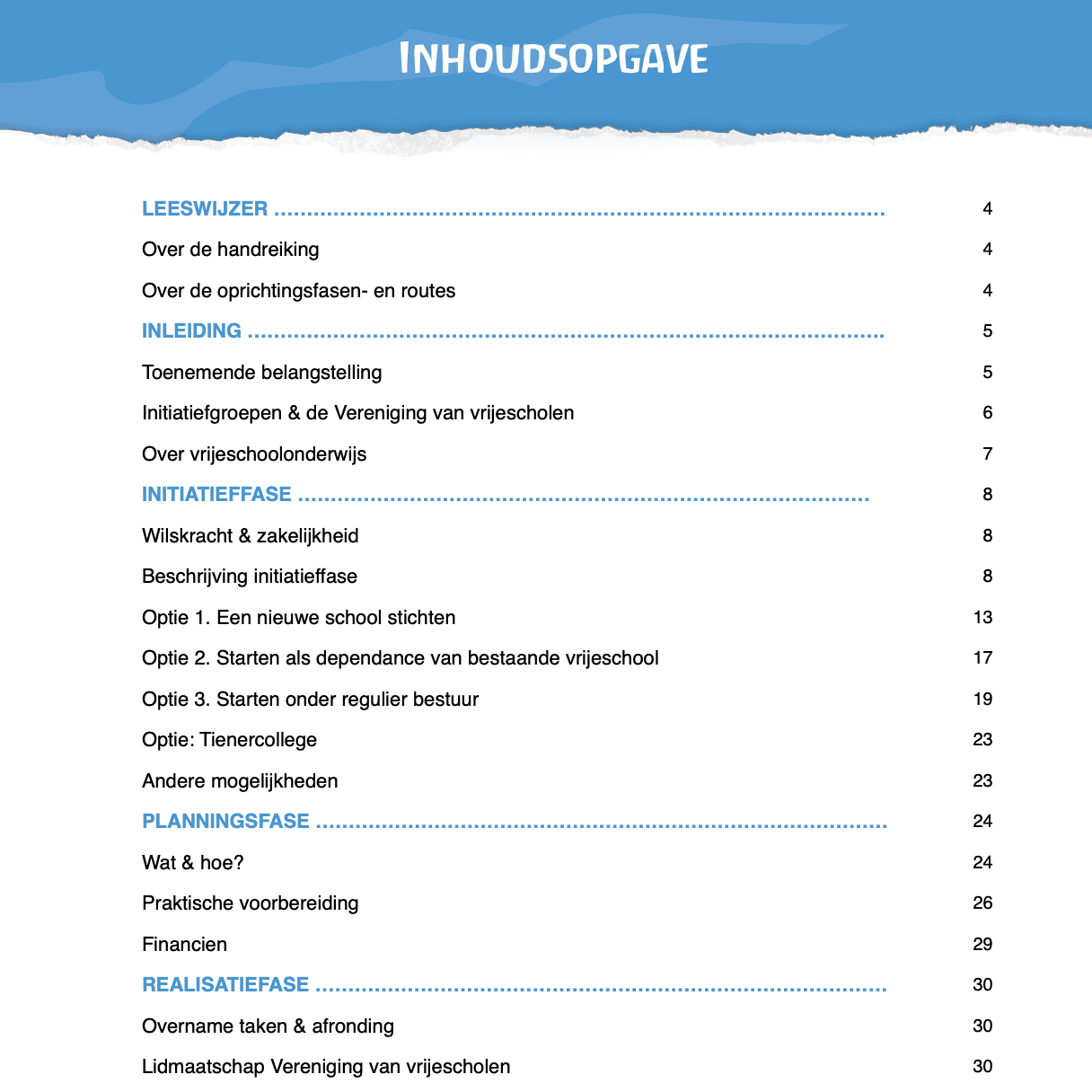 De inhoudsopgave van de huidige versie van de handreiking. We zijn bezig met een nieuwe versie in onze nieuwe huisstijl.