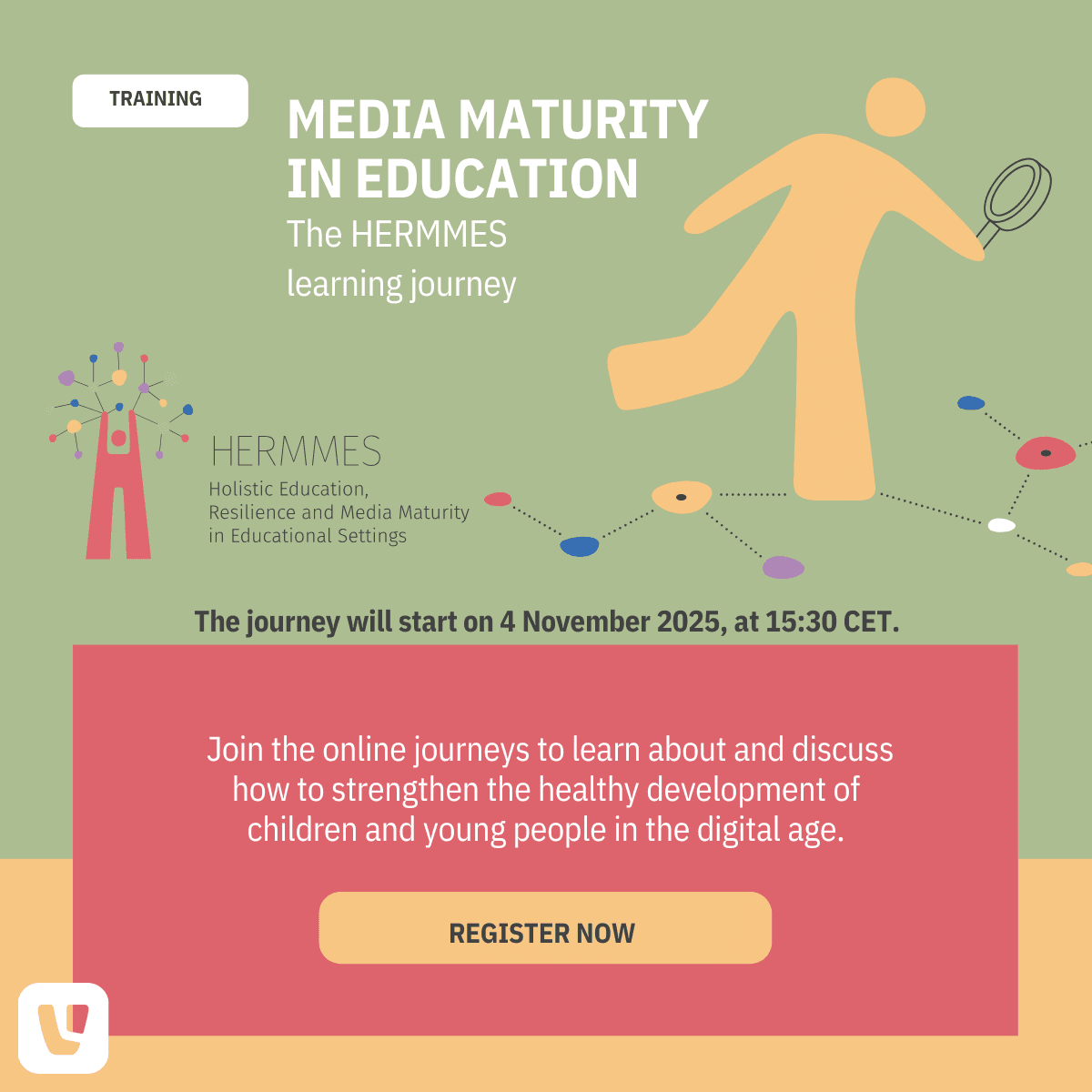 Dit schooljaar organiseert HERMMES acht online bijeenkomsten. Krijg toegang tot inspirerend materiaal, ontmoet en wissel uit met een internationale groep leraren, ouders, schoolleiders, pedagogisch adviseurs en experts op het gebied van veiligheid en welzijn, kritische informatie en mediawijsheid – en nog veel meer!